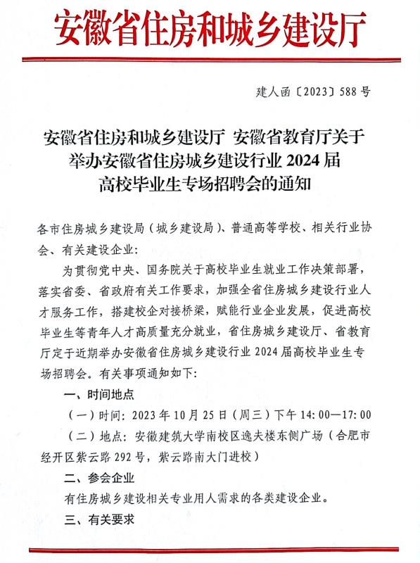 点击下载文件: 安徽省住房城乡建设行业2024届高校毕业生专场招聘会岗位需求表.doc