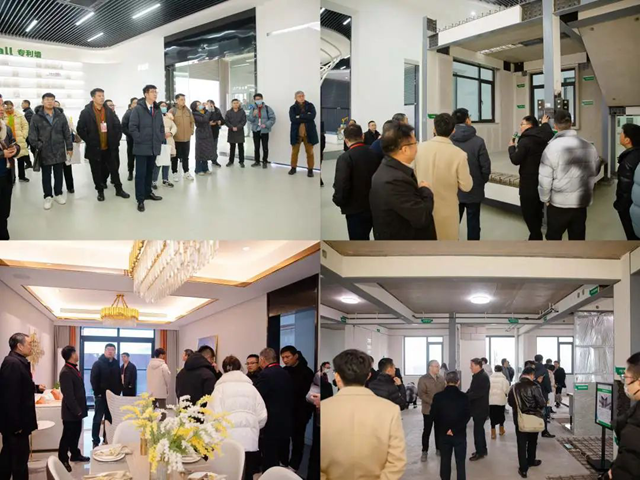 与会代表就大东吴建筑科技公司装配式产业基地进行观摩交流。大东吴集团率先提出了绿色转型发展,从“传统建筑装饰产业向现代化绿色建筑‘智造’产业” 转型升级,走创新发展绿色低碳之路。通过物联网、云计算、大数据、5G、BIM等先进技术,实现行业的数字化、智能化管理,以科技创新为推动力。真正实现了像搭积木一样的造房子,装修房子。