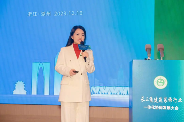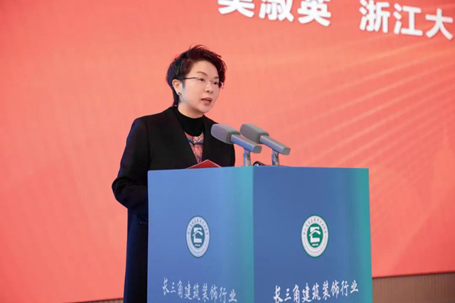 湖州市建筑业行业协会会长、浙江大东吴集团有限公司董事长吴淑英出席会议并致辞。她表示,今天这个会场是“长三角一体化主要领导人会议”举办场地,大东吴作为施工总承包单位在2020年年初新冠疫情期间,缺人缺材料的严峻情况下,仅用了100天,顺利完成各项施工任务。 今天,为响应党中央长三角一体化发展的战略部署,我们在这里召开长三角装饰行业一体化协同发展大会,对构建建筑行业新发展格局、推动高质量发展具有重要意义并将发挥重要作用。