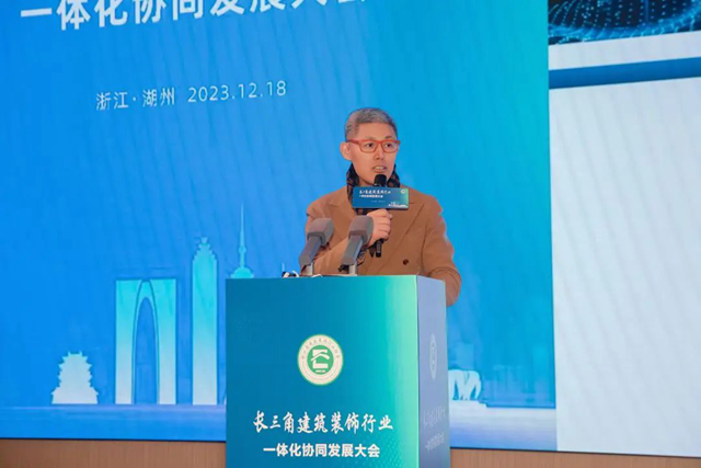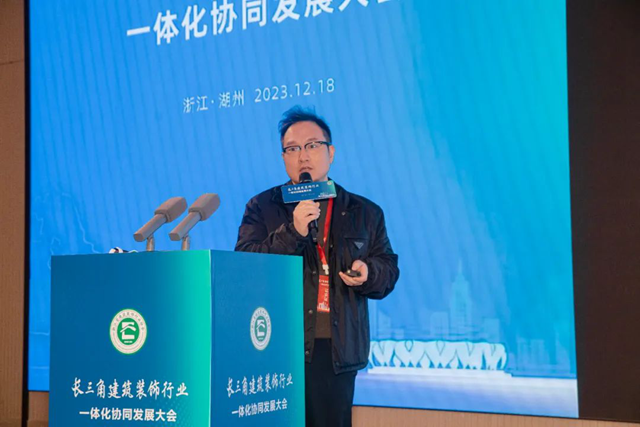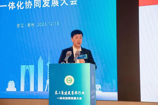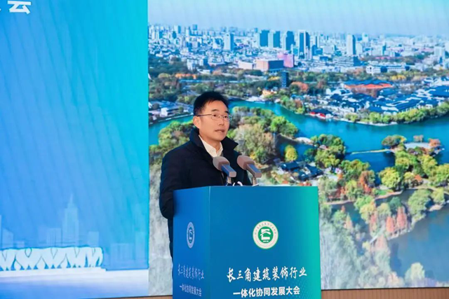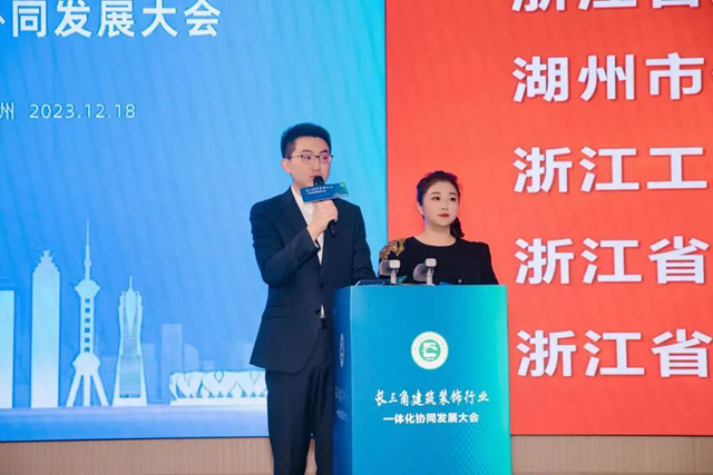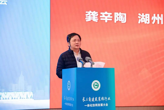 湖州市住房和城乡建设局党委委员、副局长龚辛陶出席会议并致辞。他指出,湖州是一个历史悠久的城市,拥有丰富的文化遗产和独特的自然风光。在建筑装饰业方面,湖州有自己的特点。一是湖州注重传统与现代的结合;二是湖州注重环境保护和可持续发展;三是湖州建筑装饰业在设计创新方面具有特色。他祝愿长三角区域建筑装饰行业发展得更快、更好。