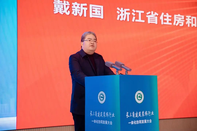 浙江省住房和城乡建设厅建筑市场监管处戴新国处长出席会议并致辞。他指出,长三角是我国经济发展最活跃、开放程度最高、创新能力最强的区域之一,在全国经济中具有举足轻重的地位,具有极大的区域带动和示范作用。长三角区域一体化发展是重要的国家战略,也为建筑装饰业高质量发展带来新机遇。他强调,长三角建筑装饰行业高质量发展要加快“一体化发展,工业化转型,品牌化建设”。省建筑装饰行业协会及会员企业在奋力推进中国式现代化新征程中,一定会干在实处、走在前列、勇立潮头,为推动我省建筑装饰行业现代化高质量发展贡献新的力量。