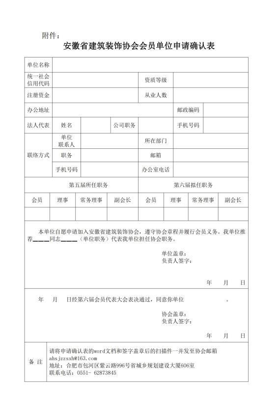 点击下载文件: 附件:安徽省建筑装饰协会会员单位申请确认表.docx