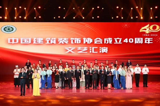 中国建筑装饰协会副会长兼副秘书长艾鹤鸣作《大国装饰——中国建筑装饰协会成立40周年献礼》书籍发布。随后,中国建筑装饰协会成立40周年文艺汇演在热烈的氛围中进行,致敬行业四十年共同走过的光辉岁月。