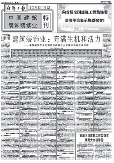 《建筑装饰业:充满生机和活力—建筑装饰行业在国民经济和社会发展中的地位和作用》一文在《经济日报》五版刊登