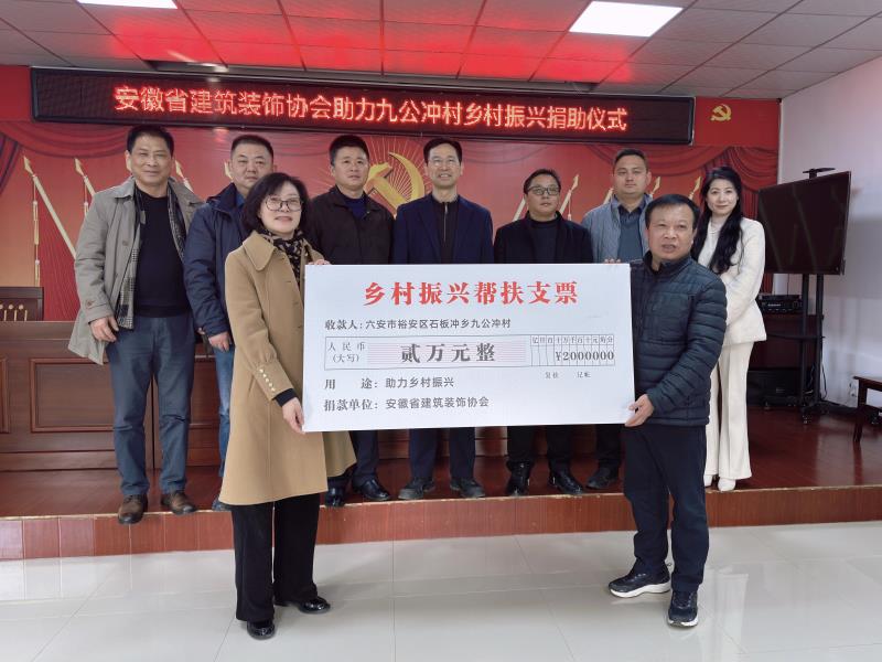 安徽省建筑装饰协会向九公冲村捐赠乡村振兴帮扶支票