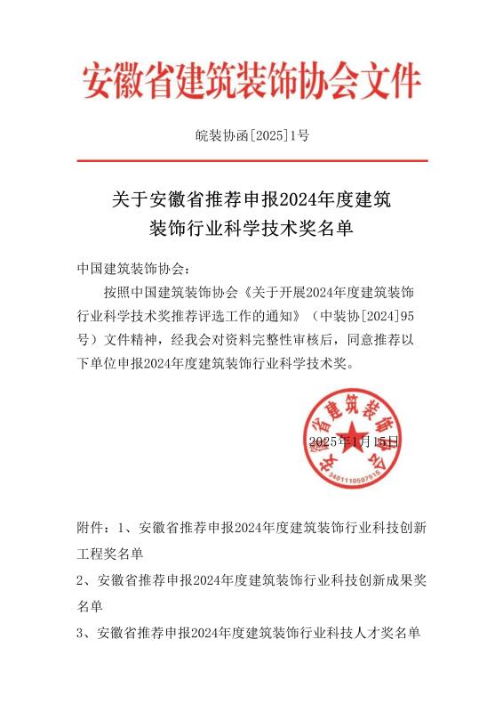 上一篇:中国建筑装饰协会:关于发布2024年中国建筑装饰行业科技成果评价结论的通知