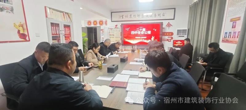 近日,市建筑装饰协会党支部组织召开学习贯彻党的二十届四中全会精神专题学习会,集中传达学习党的二十届四中全会精神,全体党员、预备党员及入党积极分子参加会议。会议由支部书记尹家富带领下集体学习了《中国共产党第二十届中央委员会第四次全体会议公报》全部内容,并结合装饰行业发展实际研究部署贯彻落实举措,推动全会精神在装饰行业领域落地生根。