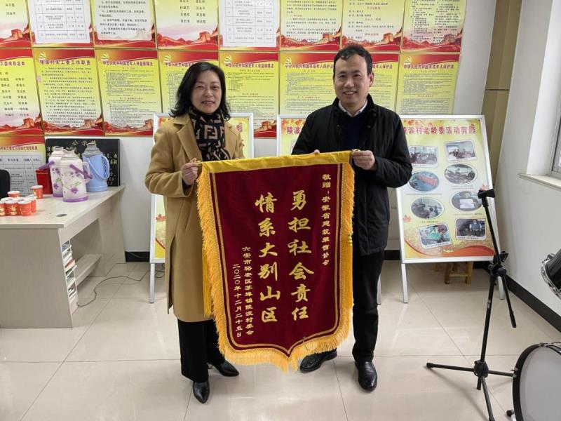 史劲松书记和大家分享了驻村以来的心得和感触,介绍了陵波村近两年来在省住建厅帮扶下取得的相关成就和今后陵波村的发展规划。张红燕秘书长介绍了前来参与扶贫活动的各位企业家代表,并代表安徽省建筑装饰协会向苏埠镇陵波村捐赠三万元现金用于资助贫困户农房修缮。史劲松书记代表苏埠镇陵波村委会向安徽省建筑装饰协会授予“勇担社会责任,情系大别山区”扶贫锦旗。