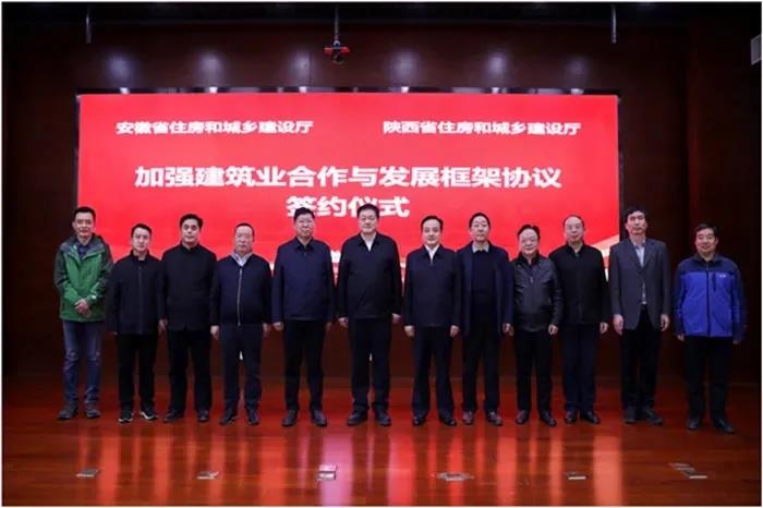 3月24日下午,安徽省住房城乡建设厅与陕西省住房城乡建设厅在合肥举行建筑业合作与发展框架协议签约仪式。安徽省住房城乡建设厅厅长贺懋燮、陕西省住房城乡建设厅副厅长茹广生出席签约仪式并致辞,安徽省住房城乡建设厅副厅长刘孝华主持签约仪式。