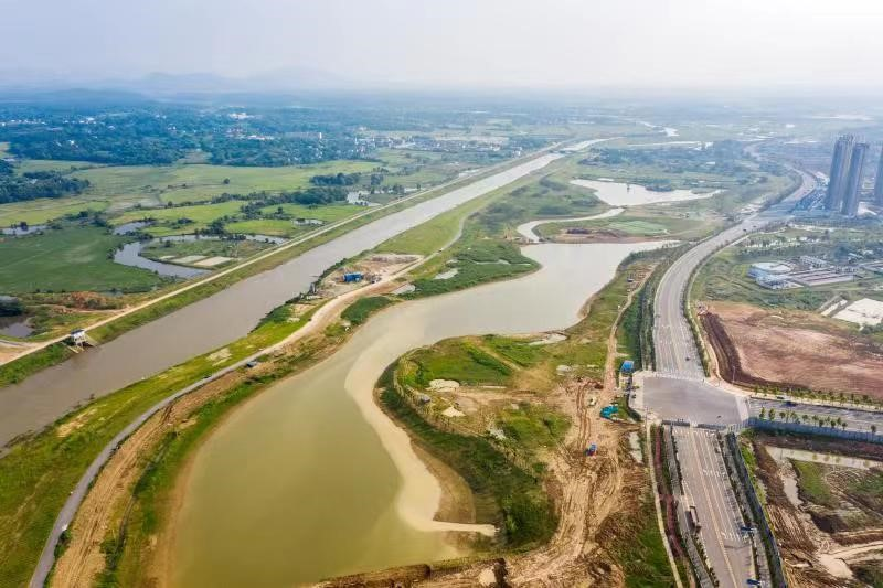 该工程的委托建设单位为安徽省引江济淮集团有限公司,怀宁县重点工程建设中心作为代建单位。工程地点位于怀宁县滨河大道(稼先路——独秀大道段),西侧起点距离怀宁县污水处理厂(现厂址)约三百米,距离远期污水处理厂(石如大道与滨河大道交口东南角)两公里。项目占地123.45亩,主要建设内容为土石方工程、管网工程、植物配置工程、水体净化工程等,工程总投资约1400万元。在施工中,腾境集团始终以工程的安全和质量为重点,做到工期、安全质量、文明施工等由项目负责人亲自抓,各专业人员具体抓。通过精心组织、严格管理、科学施工,不仅按期优质高效地完成了任务,而且在施工中磨砺了项目所有人员的意志,进一步提高了腾境集团的施工技术和管理水平。