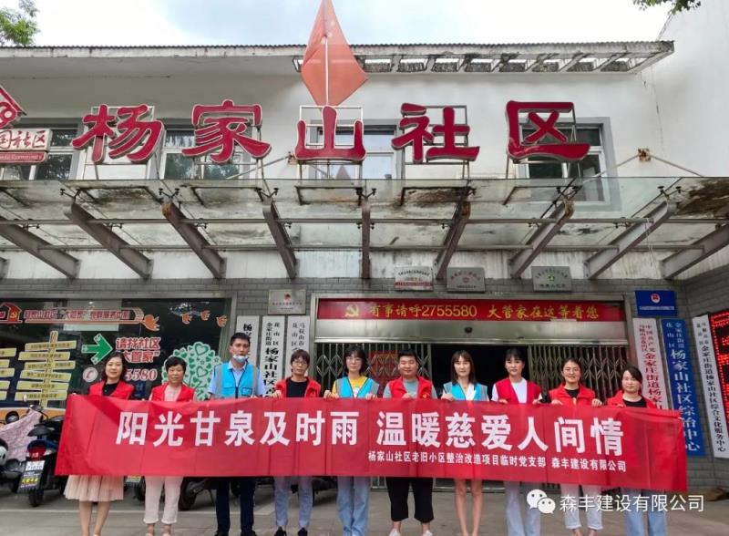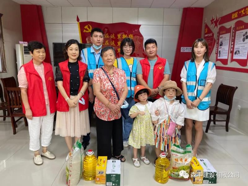 在杨家山社区老旧小区整治改造项目临时党支部赵书记的带领下,森丰建设有限公司数名青年同志一同为困难群众送去爱心与问候。