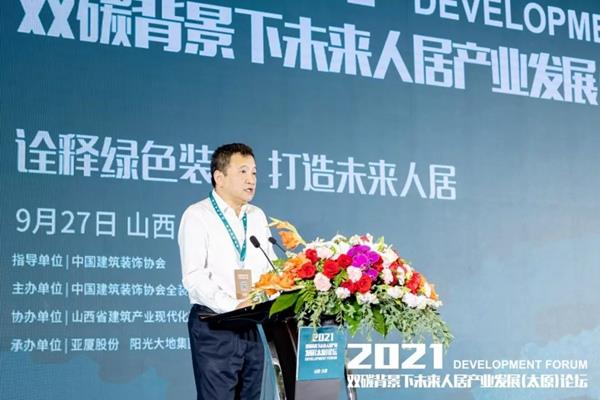 9月27日,由中国建筑装饰协会指导,中国建筑装饰协会全装修产业分会主办,山西省建筑产业现代化联合会、太原市建设工程质量监督站协办,亚厦股份、阳光大地集团承办的“诠释绿色装修,打造未来人居”2021双碳背景下未来人居产业发展(太原)论坛于太原洲际酒店举行。