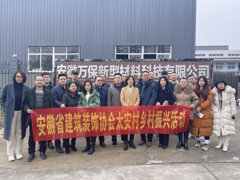 为巩固脱贫攻坚成果,助力乡村振兴,彰显我省建筑装饰行业的社会责任担当和奉献精神,安徽省建筑装饰协会转发安徽省住房和城乡建设厅驻太安村工作队《关于“邀请参与太安村巩固拓展脱贫攻坚成果与推进乡村振兴工作”倡议书》,号召广大会员单位积极响应,充分发挥行业自身优势,踊跃参与太安村的建设和振兴事业。应安徽省住房和城乡建设厅驻太安村工作队邀请,1月7日,协会组织部分会员单位代表前往太安村合作企业--安徽万保新型材料科技有限公司,与该企业对接合作事宜,带动企业发展,支持太安村的建设和振兴事业。