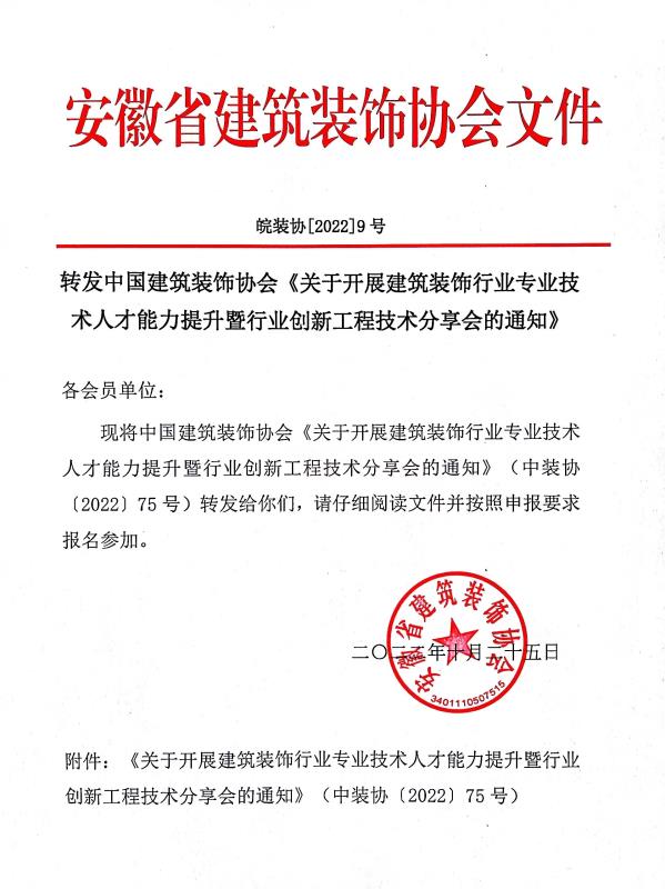 点击下载文件: 关于开展建筑装饰行业专业技术人才能力提升暨行业创新工程技术分享会的通知.doc