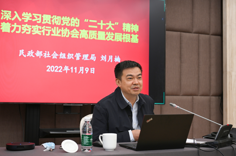 刘月楠处长首先进行了习近平总书记在党的第二十次全国代表大会上的报告精神和党的二十大的重要意义的宣讲,介绍了新时期社会组织在全面发展协商民主、提高人民生活品质、坚定不移全面从严治党等方面的主要任务,以及新时代十年社会组织管理在“全面加强党建工作、保证社会组织正确发展方向”、“稳妥推进脱钩改革、激发行业协会商会活力”、“积极开展打非行动,净化社会组织生存发展环境”、“加强政策法规建设,为社会组织发展提供支撑”等方面的主要成就。